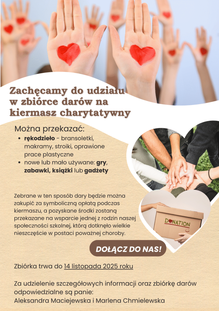 Podziel się dobrem! Zachęcamy do przekazania darów na zbiórkę charytatywną.