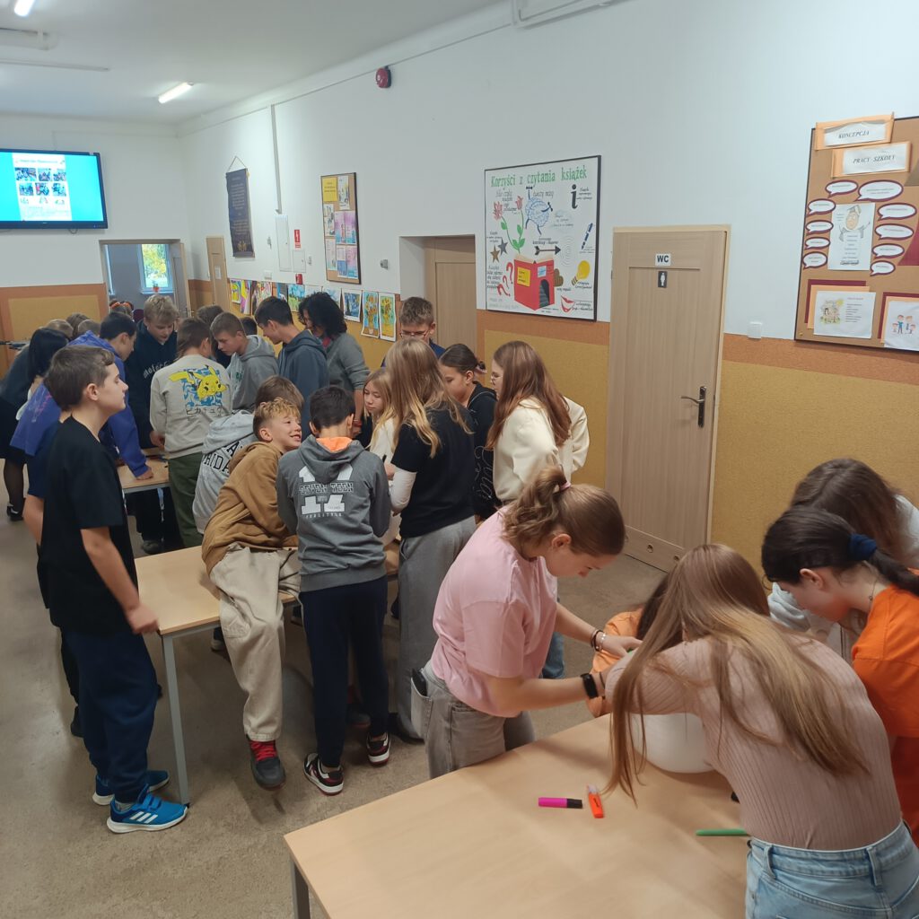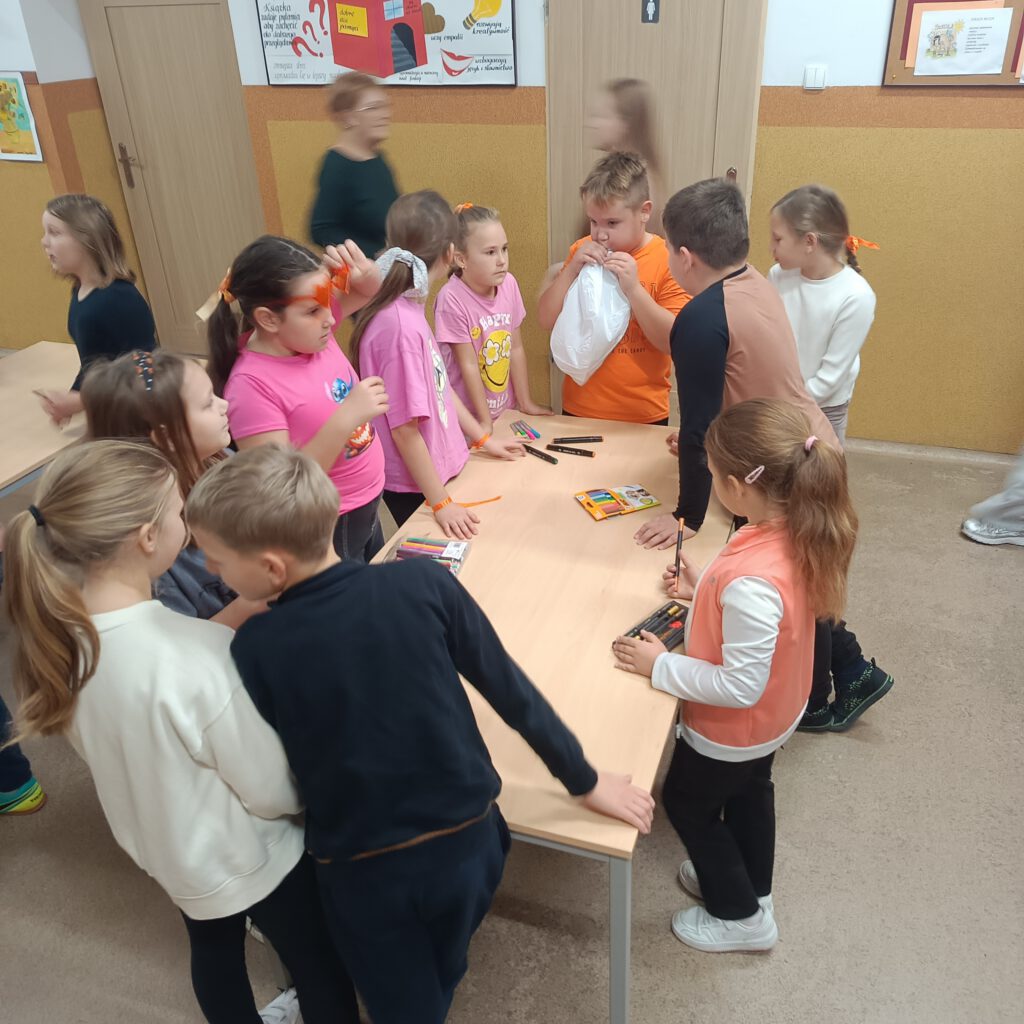 Podopieczni Pani Marty Oczachowskiej zawsze chętnie angażują się w życie szkoły – w związku z tym swoje prace postanowili przekazać na kiermasz charytatywny organizowany przez Szkolne Koło Wolontariatu.