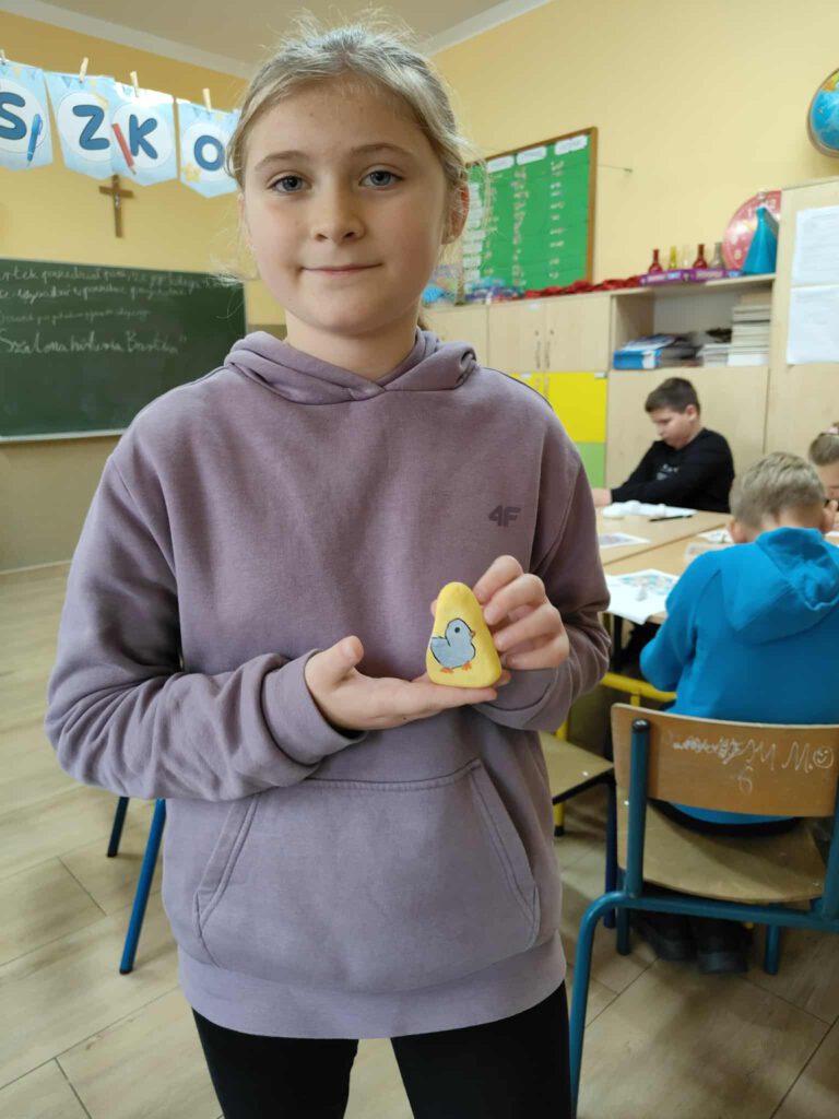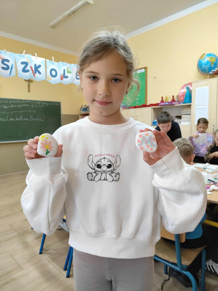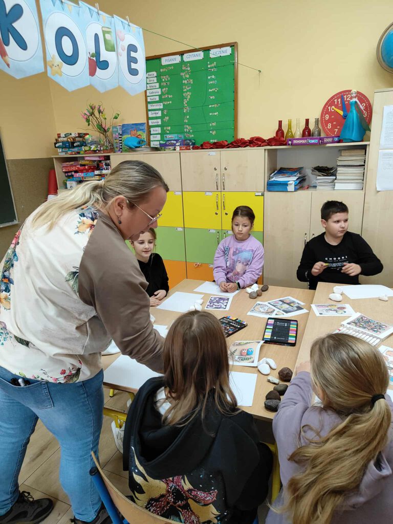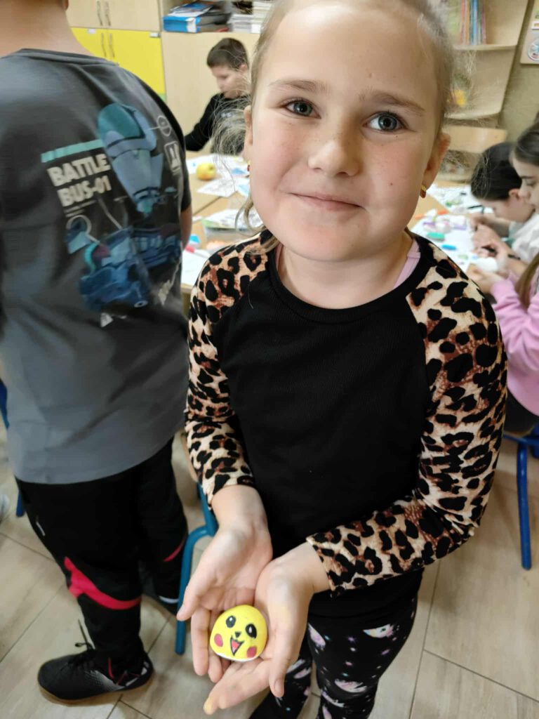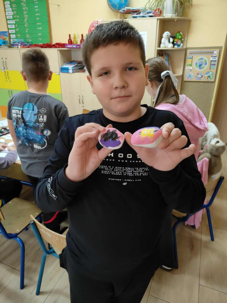 Uczniowie klasy III wzięli udział w warsztatach malowania kamieni poprowadzonych przez Panią Karolinę Ogrodowską. Pani Karolina zaprezentowała technikę malowania kamieni w taki sposób, aby stworzyć z nich małe dzieła sztuki. Trzecioklasiści z zaangażowaniem zajęli się tym zadaniem, dzięki temu powstało wiele pięknych prac!