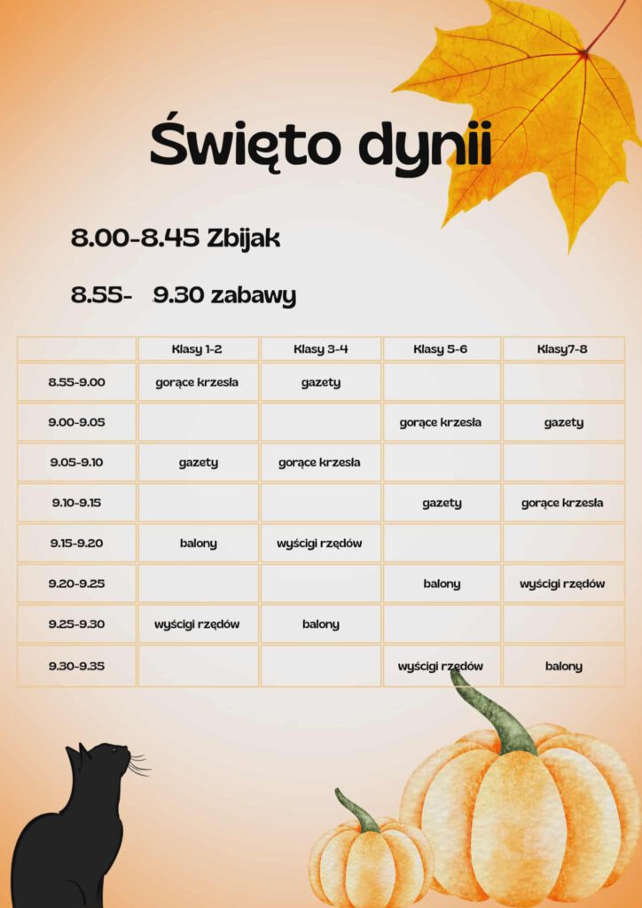 Prosimy, aby uczniowie przynieśli markery do ozdabiania piłek (dyni) oraz założyli stroje lub dodatki w kolorach pomarańczowych!