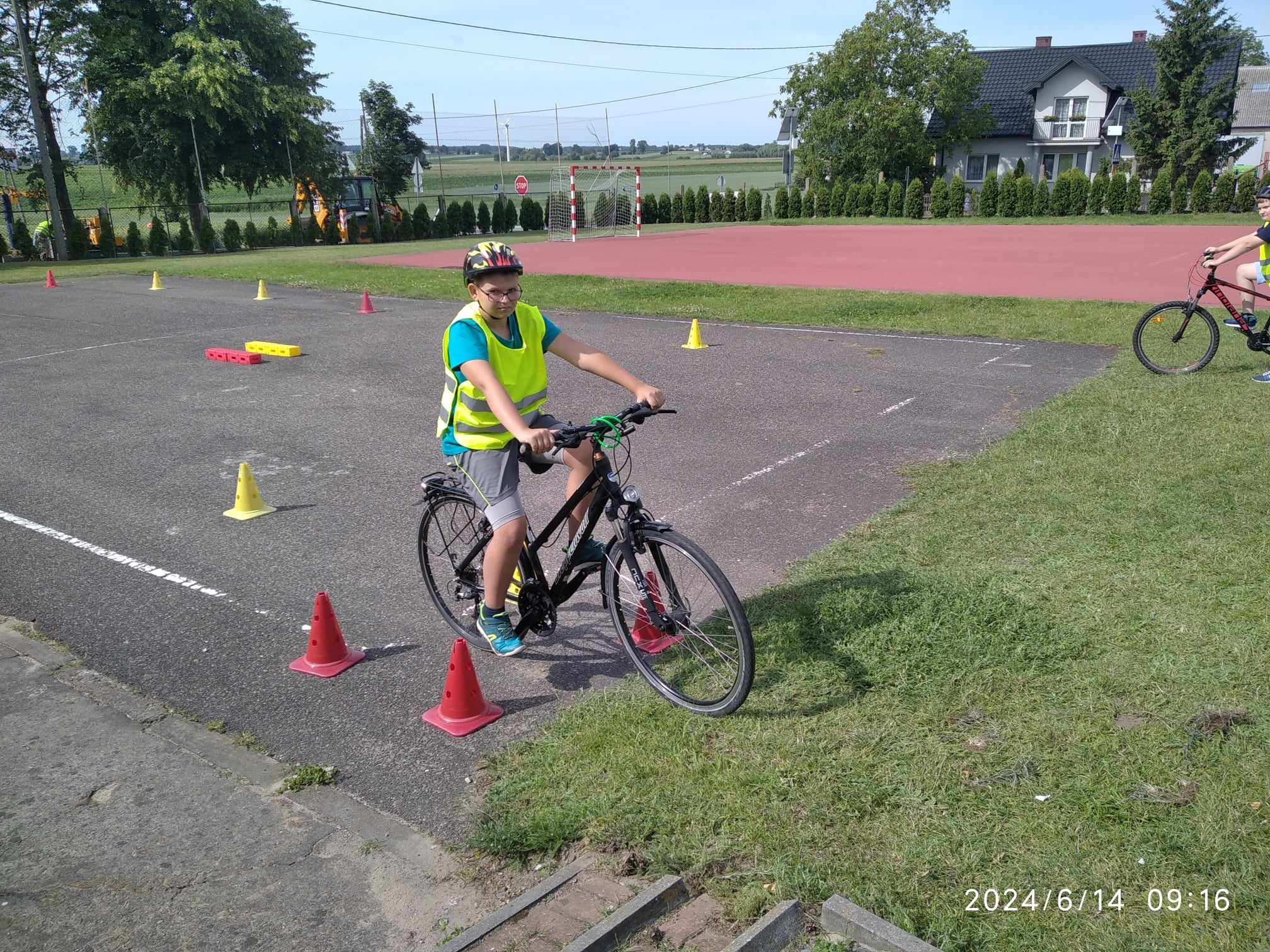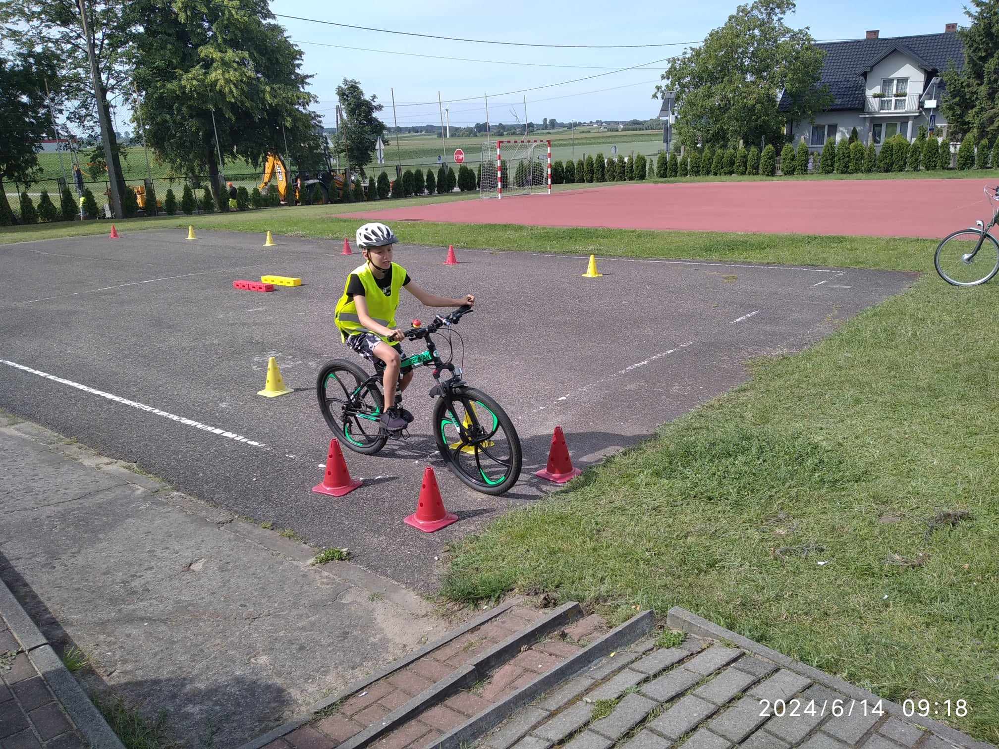 15.06.2024 r. odbył się w naszej szkole egzamin na kartę rowerową. Nad przebiegiem egzaminu czuwał: p. Janusz Rudnicki i p. Krzysztof Ciarkowski ze straży gminnej w Aleksandrowie Kujawskim oraz mł.asp. p. Karolina Majewska z Komendy Policji w Aleksandrowie Kujawskim. Przeprowadzono egzamin sprawdzający 12 uczniom z klasy czwartej po wcześniejszym zaliczeniu testu teoretycznego. Zdający kolejno odpowiadali na pytania z przepisów ruchu drogowego, zasad udzielania pierwszej pomocy, znajomości znaków drogowych. Po części teoretycznej przystąpili do egzaminu praktycznego, zakres którego obejmował: zatrzymanie się na znaku stop, jazdę przez skrzyżowanie na drodze podporządkowanej , przez skrzyżowanie na drodze z pierwszeństwem przejazdu, manewr skrętu w lewo, slalom. Oceniano też technikę jazdy na rowerze i odpowiednie wyposażenie roweru. Uczniowie byli dobrze przygotowani do egzaminu, który przebiegał sprawnie. Poradzili sobie zarówno z teorią, jak i praktyką. Podczas apelu szkolnego uczniowie otrzymają karty rowerowe. Było dużo emocji, stresu ale też ogromna satysfakcja ze zdanego egzaminu.