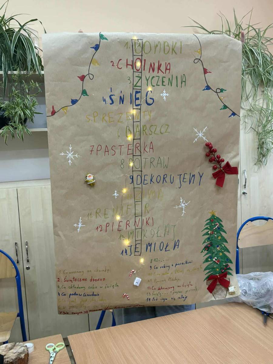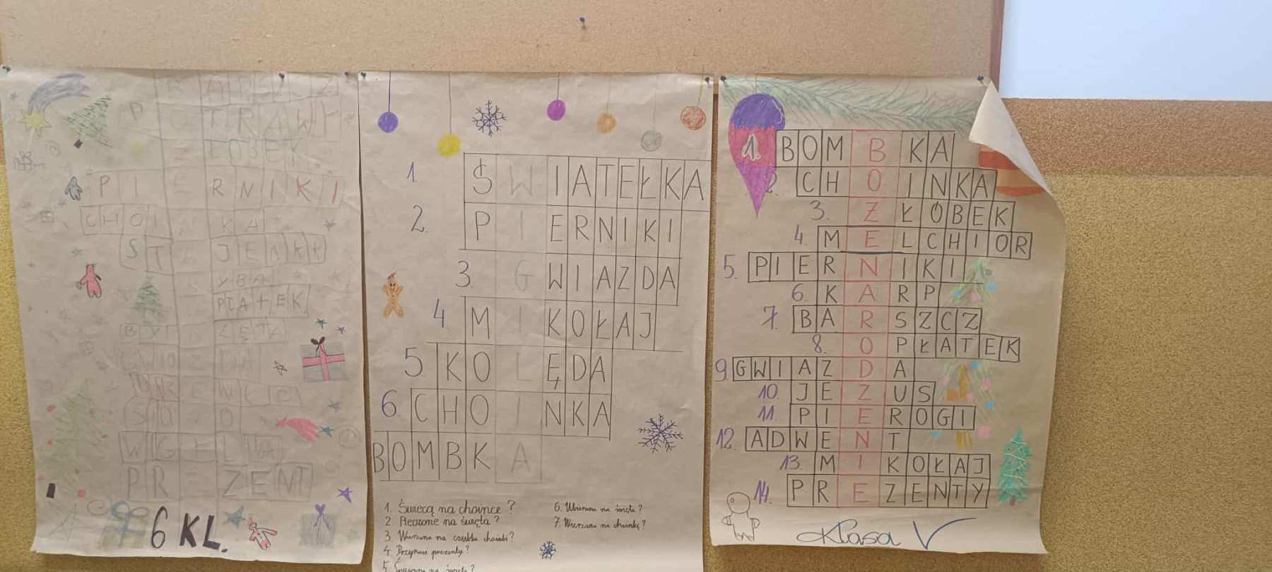 We wtorek uczniowie klas I–VIII zamienili się w twórców zagadek. Każda klasa przygotowała własne krzyżówki związane z tematyką adwentową i świąteczną. Prace zostały wywieszone na korytarzu, gdzie każdy może zapoznać się z przygotowanymi przez uczniów łamigłówkami.